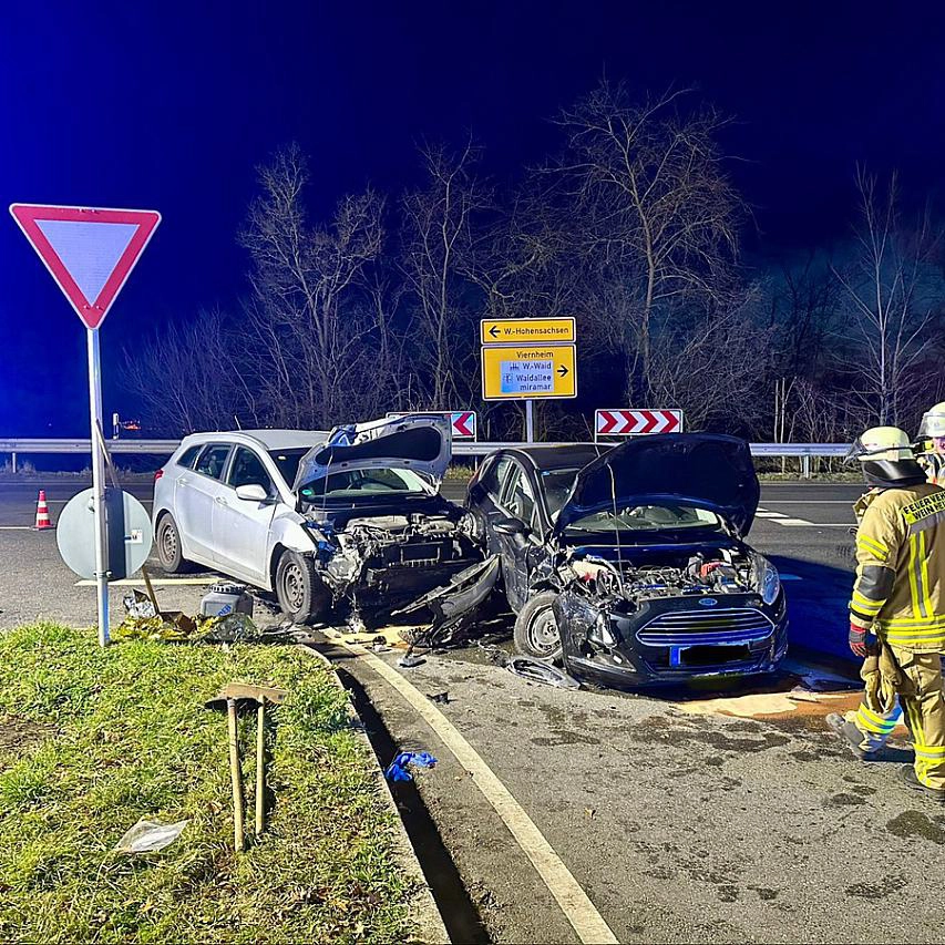 Bei einem schweren Verkehrsunfall an der Abfahrt Lützelsachsen zur südlichen Bergstraße in Weinheim sind am Donnerstagabend drei Personen verletzt worden. Das teilte die Feuerwehr Weinheim mit.