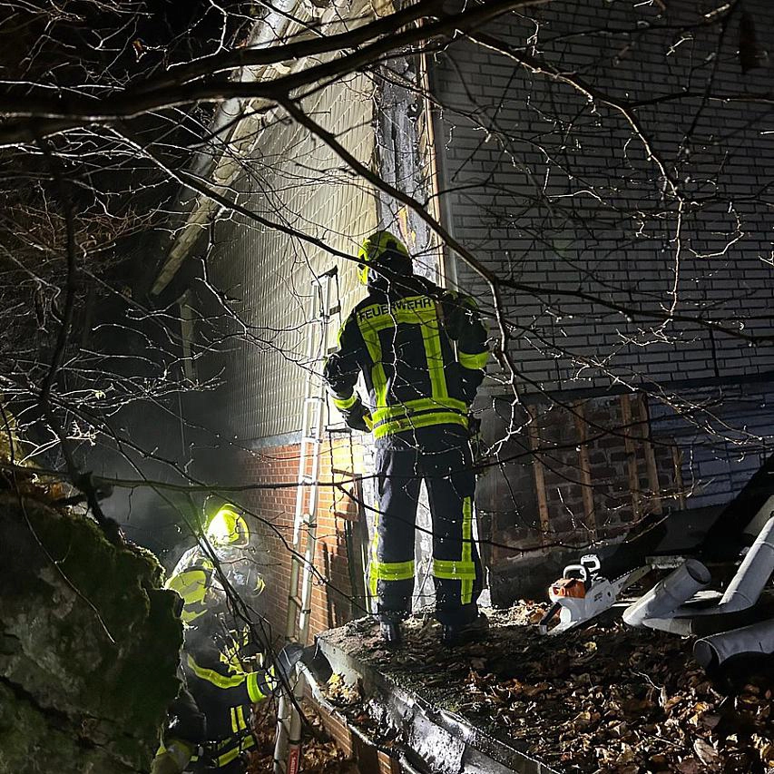 Sie forderten Verstärkung an, räumten das Gebäude und bekämpften den Brand mit zwei Trupps unter schwerem Atemschutz. Dabei öffneten sie die Fassade mit einer Kettensäge, um Glutnester zu löschen, und verhinderten so ein Übergreifen auf den Dachstuhl. Zwei Bewohner wurden vom Rettungsdienst untersucht, ein Krankenhausaufenthalt war nicht nötig.