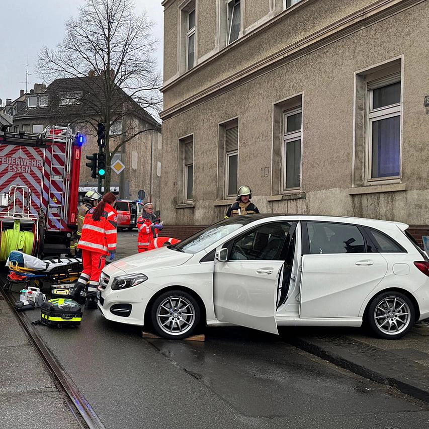 Die alarmierten Einsatzkräfte leiteten eine sofortige Rettung ein und zogen das Fahrzeug weg. Die nicht mehr ansprechbare Frau wurde wiederbelebt und nach notärztlicher Versorgung in die Uniklinik Essen gebracht. Der Fahrer des Unfallwagens, der sich noch in seinem Fahrzeug befand, wurde ebenfalls vom Rettungsdienst versorgt.