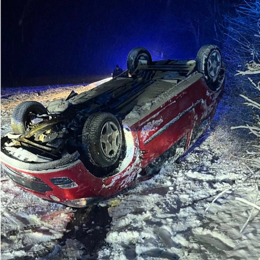 Aufgrund der winterlichen Straßenverhältnisse kam der Fahrer in einer Linkskurve von der Fahrbahn ab, touchierte eine Leitplanke und schleuderte zurück auf die Straße. Anschließend verließ der Renault die Fahrbahn nach links und überschlug sich, ehe er auf dem Dach zum Liegen kam.