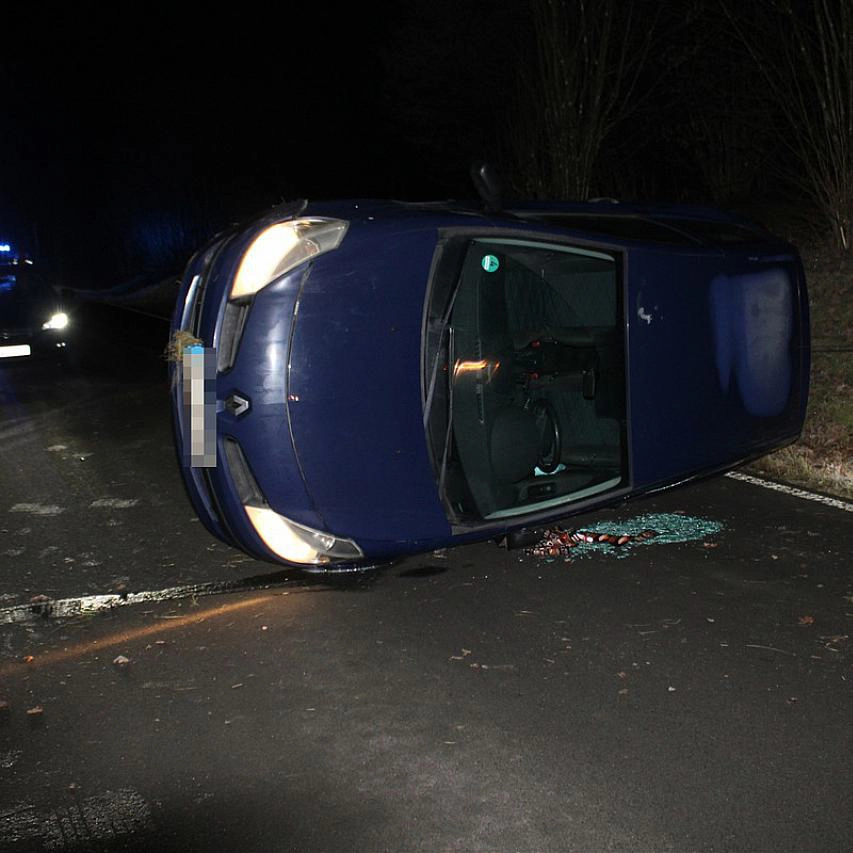 Der Fahrer war auf der Kreisstraße K 1 aus Richtung der Klärwerke unterwegs, als er in einer Rechtskurve von der Straße abkam. Der Wagen rutschte in einen Böschungsbereich, kippte auf die Fahrerseite und glitt noch mehrere Meter weiter. Der Verletzte konnte sich selbst aus dem Fahrzeug befreien, musste aber mit dem Rettungswagen in ein Krankenhaus gebracht werden.