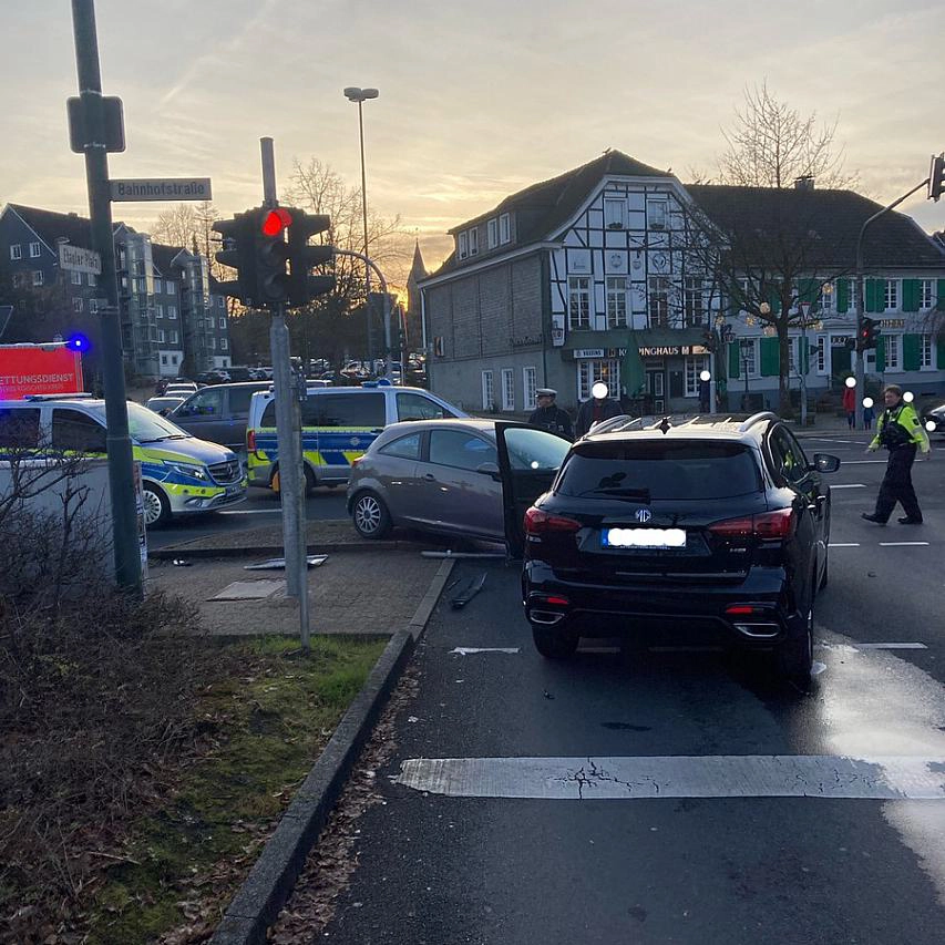 Gegen 15:30 Uhr fuhr die Seniorin mit ihrem Opel auf der Goethestraße in Richtung Etapler Platz. Im Kreuzungsbereich Peterstraße, Bahnhofstraße, Etapler Platz und Goethestraße kam es zum Zusammenstoß mit dem Streifenwagen, der sich auf Einsatzfahrt befand. Anschließend kollidierte der Opel mit dem Auto einer 50-jährigen Remscheiderin, die an der Einmündung zum Etapler Platz stand.